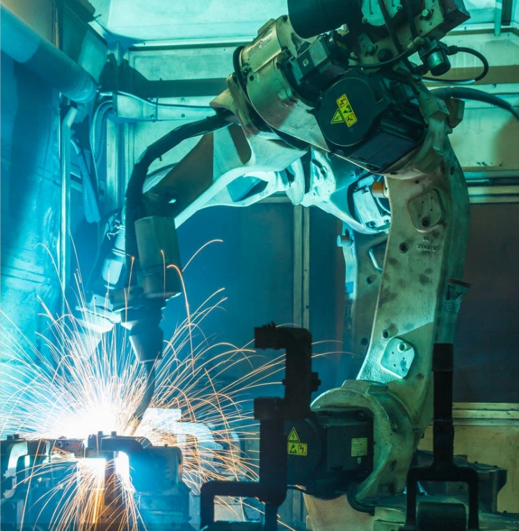 焊接机器人是从事焊接(包括切割与喷涂)的工业机器人,它主要包括机器人和设备两部分。其中,由机器人本体和控制柜(硬件及软件)组成;而焊接装备,以弧焊及点焊为例,则由焊接电源(包括其控制系统)、送丝机(弧焊)、焊枪(钳)等部分组成。对于智能机器人,还应配有传感系统,如激光或摄像传感器及其控制装置等。