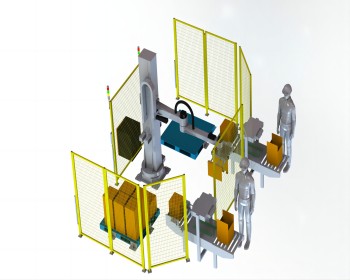 码垛机器人,是一种生产线上的码垛设备。其机械手和机身主体分别通过电控伺服系统及中心回转装置皆可实现在三维坐标内360°水平精准回转、机械手可垂直升降且可抓码多种异形建筑制品成方垛、采用对重质量平衡方式一次抓码载荷可达600公斤的重载码垛机器人,能完全满足砌块(砖)和其它相关行业的重载码垛需要。