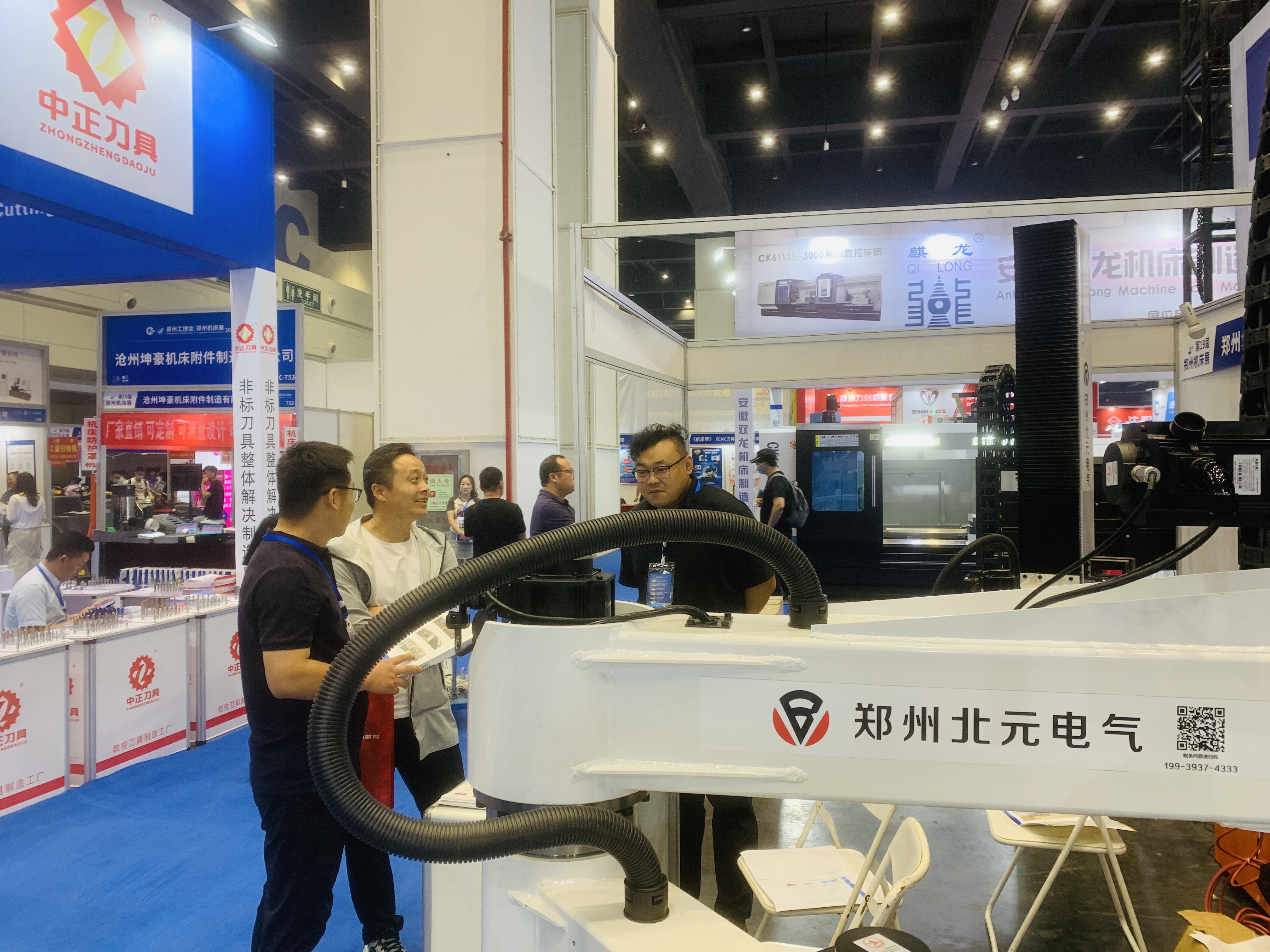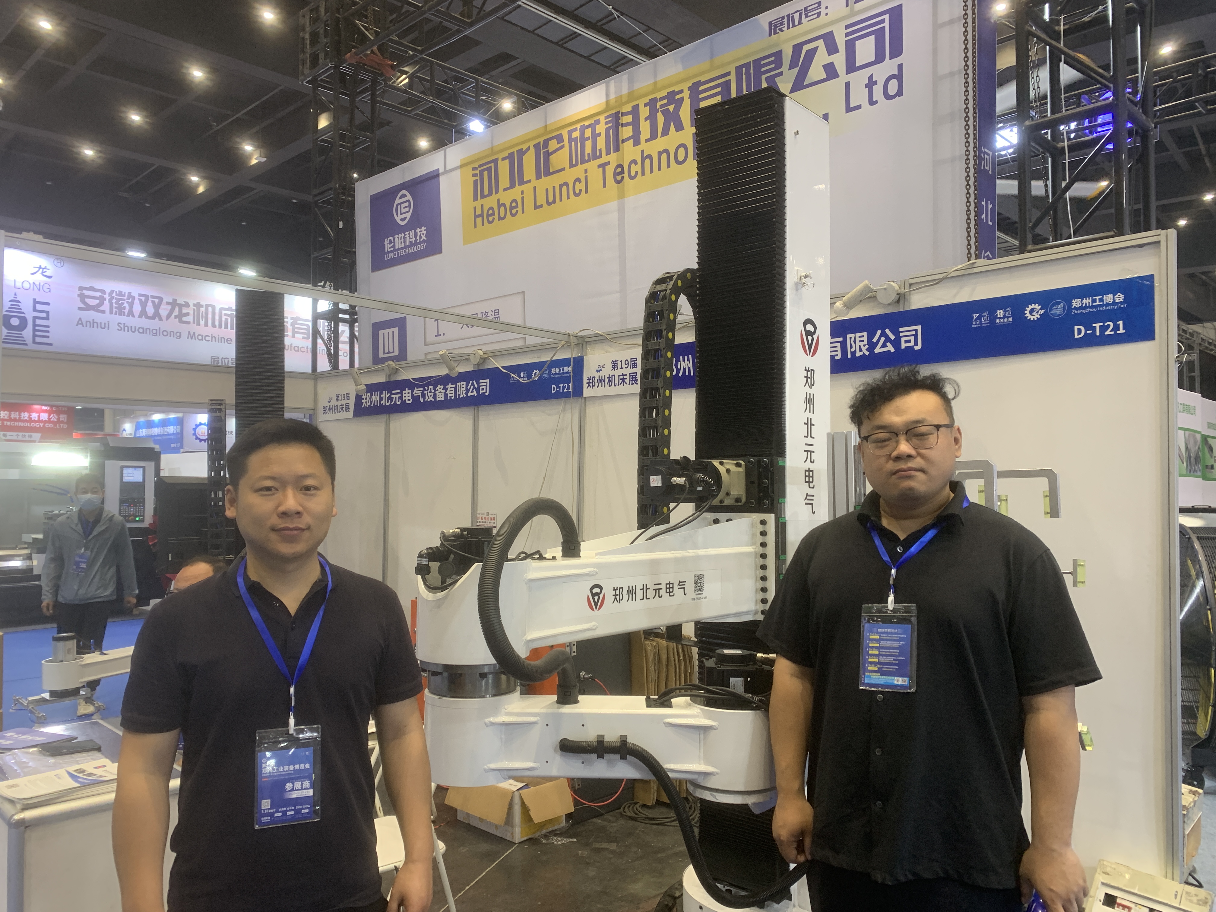 2023年5月18日郑州北元电气受邀参加第19届工业博览会,参展的两台码垛机器人现场得到一致好评,询问用户不断,经过讲解,北元电气码垛机器人独立自主研发,做工精良,尤其机器人系统代替传统的PLC系统使运行更加稳定,操作更加简单,精度更加完善。电机系统采用台湾纳博特,再次增加机器人的使用寿命。